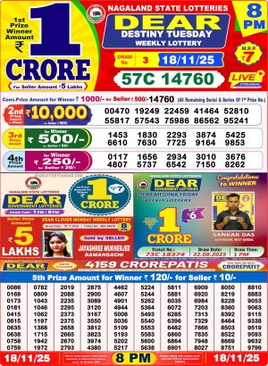 Nagaland State Lottery Sambad Dear Night 8 PM Result Today 18-11-2025 Winners List