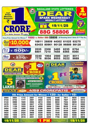 Nagaland State Lottery Sambad Dear Morning 1 PM Result Today 19-11-2025 LIVE