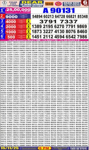 Punjab State Dear 50 Lottery 6 PM Result 15-11-2025