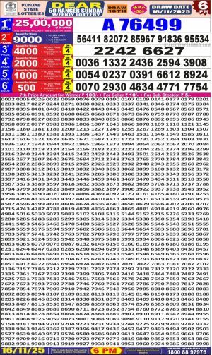 Punjab State Dear 50 Lottery 6 PM Result 16-11-2025