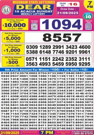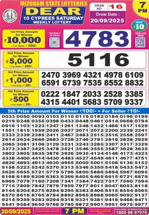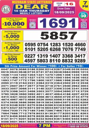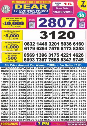 Dear 10 7PM Weekly Lottery Result Today 16-09-2025