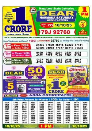 Nagaland State Lottery Sambad Dear Morning 1 PM Result Today 18-10-2025 LIVE