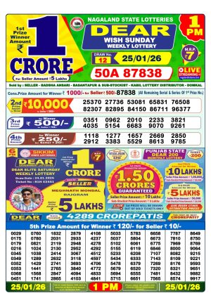 Nagaland State Lottery Sambad Dear Morning 1 PM Result Today 25-01-2026 LIVE