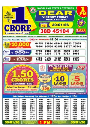 Nagaland State Lottery Sambad Dear Morning 1 PM Result Today 30-01-2026 LIVE