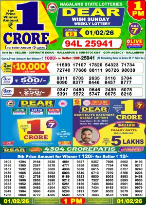 Nagaland State Lottery Sambad Dear Morning 1 PM Result Today 01-02-2026 LIVE