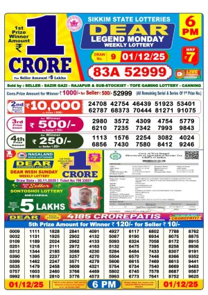 Sikkim State Lottery Sambad Dear Evening 6 PM Result Today 01-12-2025
