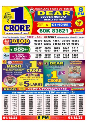 Nagaland State Lottery Sambad Dear Night 8 PM Result Today 01-12-2025 Winners List