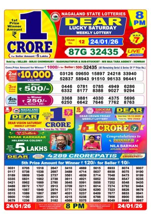 Nagaland State Lottery Sambad Dear Night 8 PM Result Today 24-01-2026 Winners List