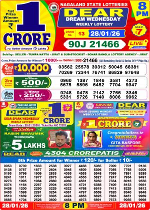 Nagaland State Lottery Sambad Dear Night 8 PM Result Today 28-01-2026 Winners List