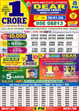 Nagaland State Lottery Sambad Dear Night 8 PM Result Today 30-01-2026 Winners List