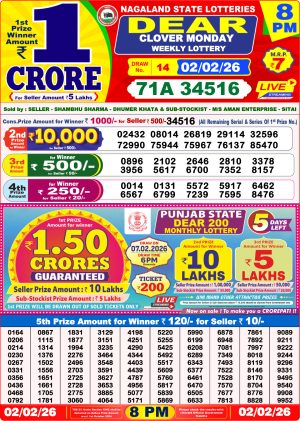 • Nagaland State Lottery Sambad Dear Night 8 PM Result Today 03-02-2026 Winners List