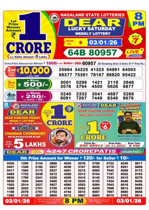 Nagaland State Lottery Sambad Dear Night 8 PM Result Today 03-01-2026 Winners List