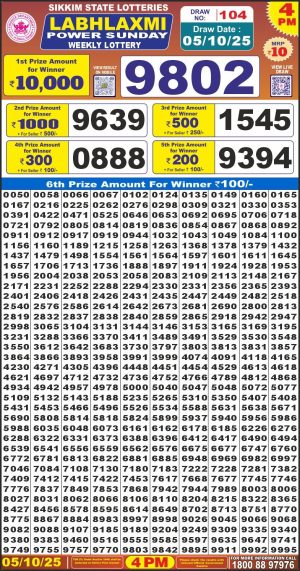 Labh Laxmi Lottery 4 PM Result Today 05-10-2025 LIVE