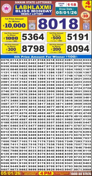 • Sikkim State Lottery Sambad Dear Evening 6 PM Result Today 04-02-2026