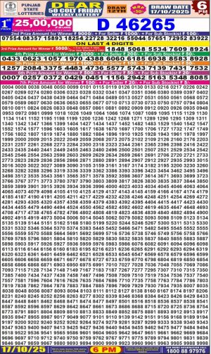 Punjab State Dear 50 Lottery 6 PM Result 12-10-2025