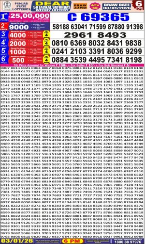 Punjab State Dear 50 Lottery 6 PM Result 03-01-2026