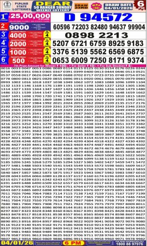 • Punjab State Dear 50 Lottery 6 PM Result 04-02-2026