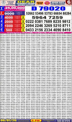 Punjab State Dear 50 Lottery 6 PM Result 06-01-2026