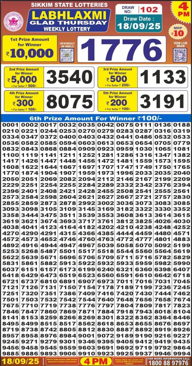 Labh Laxmi Lottery 4 PM Result Today 18-09-2025 LIVE September 18, 2025 Leave a Comment on Labh Laxmi Lottery 4 PM Result Today 18-09-2025 LIVE