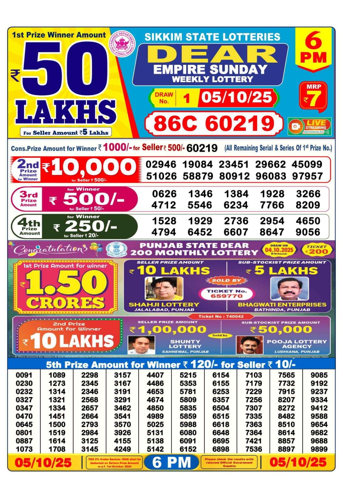Sikkim State Lottery Sambad Dear Evening 6 PM Result Today 05-10-2025 October 5, 2025 Leave a Comment on Sikkim State Lottery Sambad Dear Evening 6 PM Result Today 05-10-2025