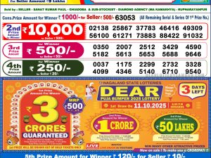 Nagaland State Lottery Sambad Dear Evening 6 PM Result Today 14-10-2025 October 14, 2025 Leave a Comment on Nagaland State Lottery Sambad Dear Evening 6 PM Result Today 14-10-2025