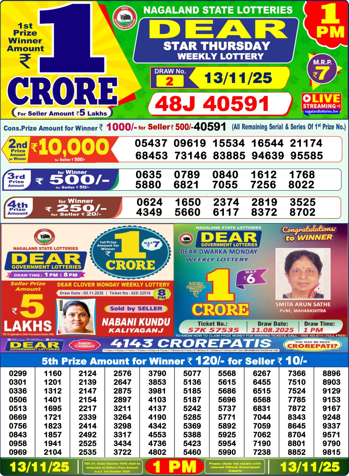 Nagaland State Lottery Sambad Dear Morning 1 PM Result Today 13-11-2025 LIVE November 13, 2025 Leave a Comment on Nagaland State Lottery Sambad Dear Morning 1 PM Result Today 13-11-2025 LIVE
