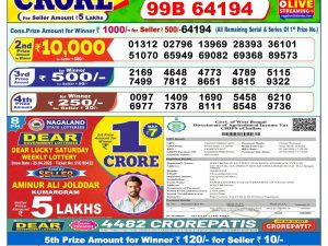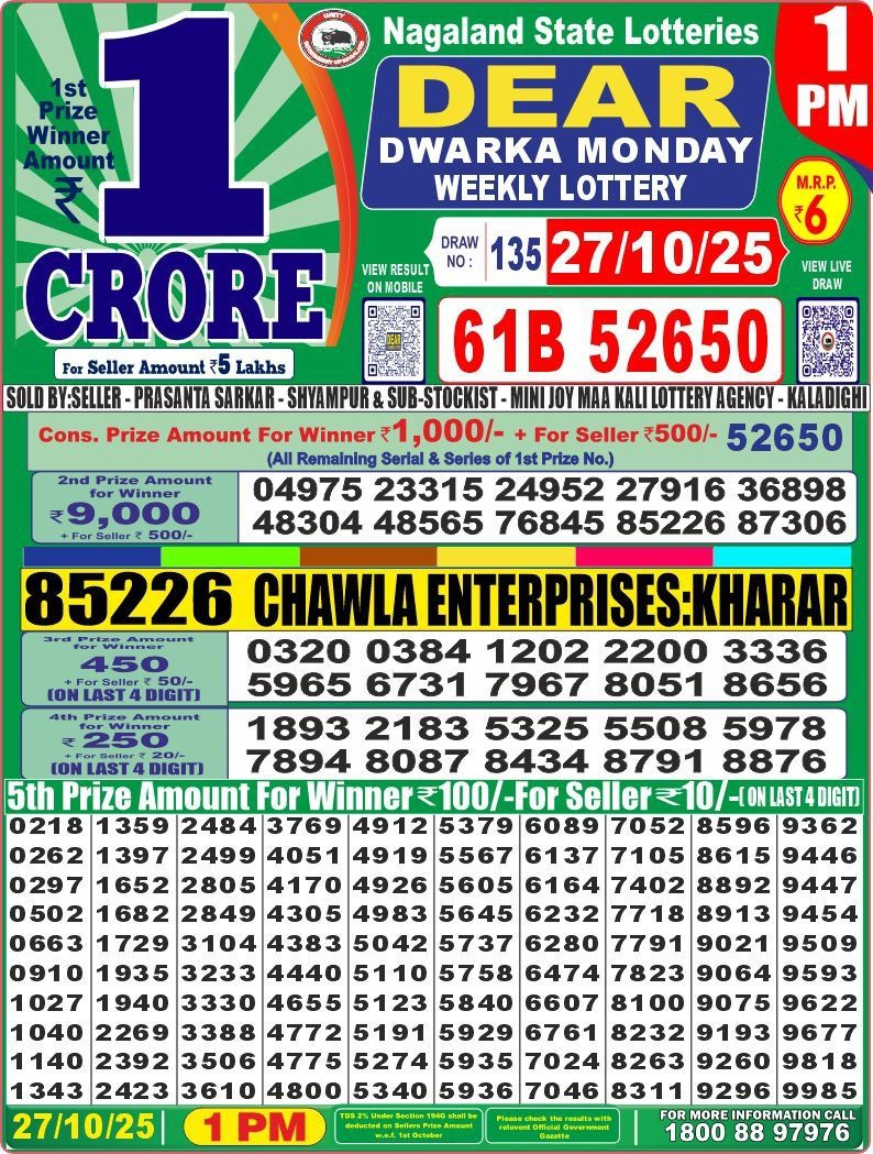 Nagaland State Lottery Sambad Dear Morning 1 PM Result Today 27-10-2025 LIVE October 27, 2025 Leave a Comment on Nagaland State Lottery Sambad Dear Morning 1 PM Result Today 27-10-2025 LIVE