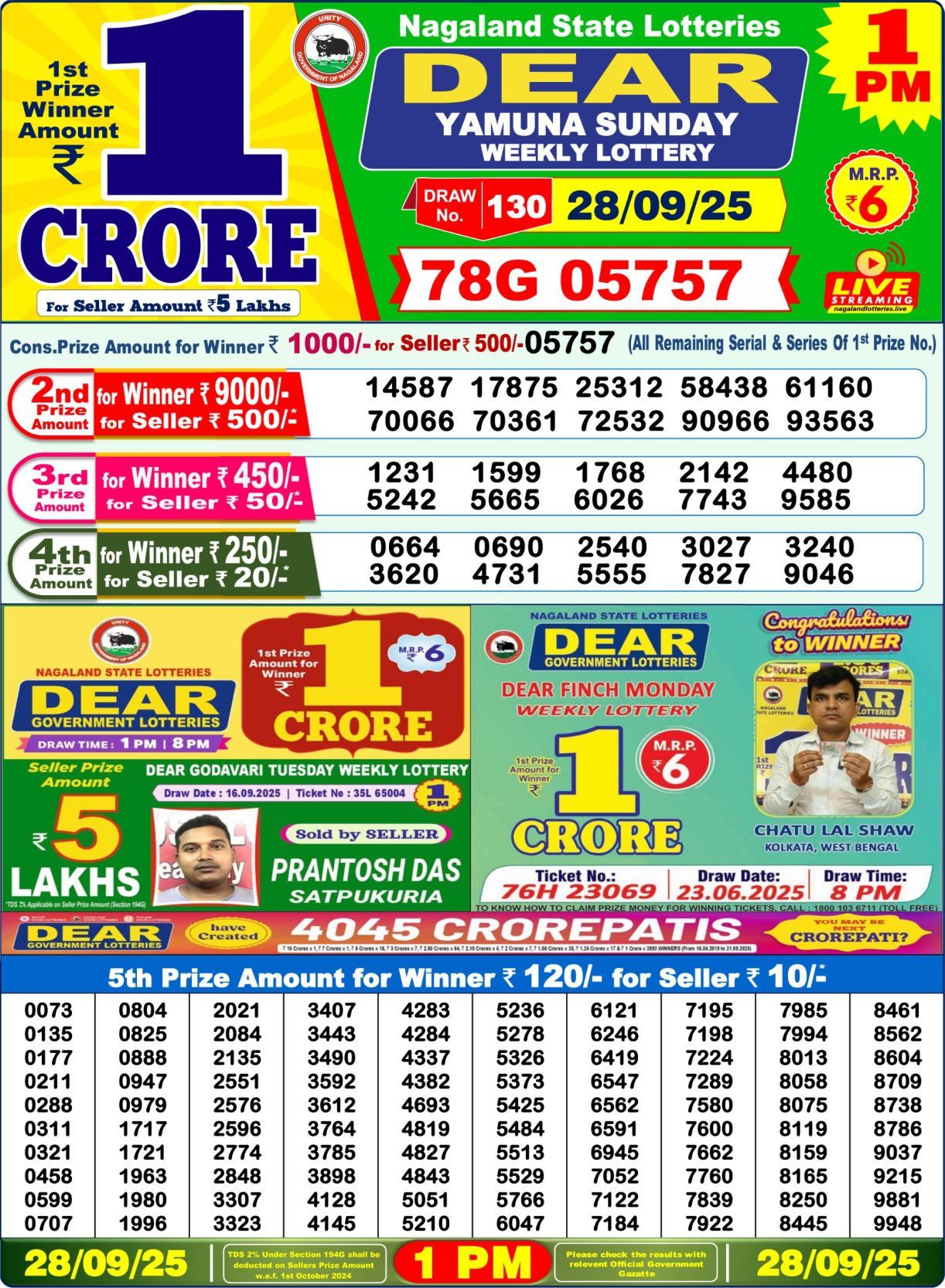 Nagaland State Lottery Sambad Dear Morning 1 PM Result Today 28-09-2025 LIVE September 28, 2025 Leave a Comment on Nagaland State Lottery Sambad Dear Morning 1 PM Result Today 28-09-2025 LIVE