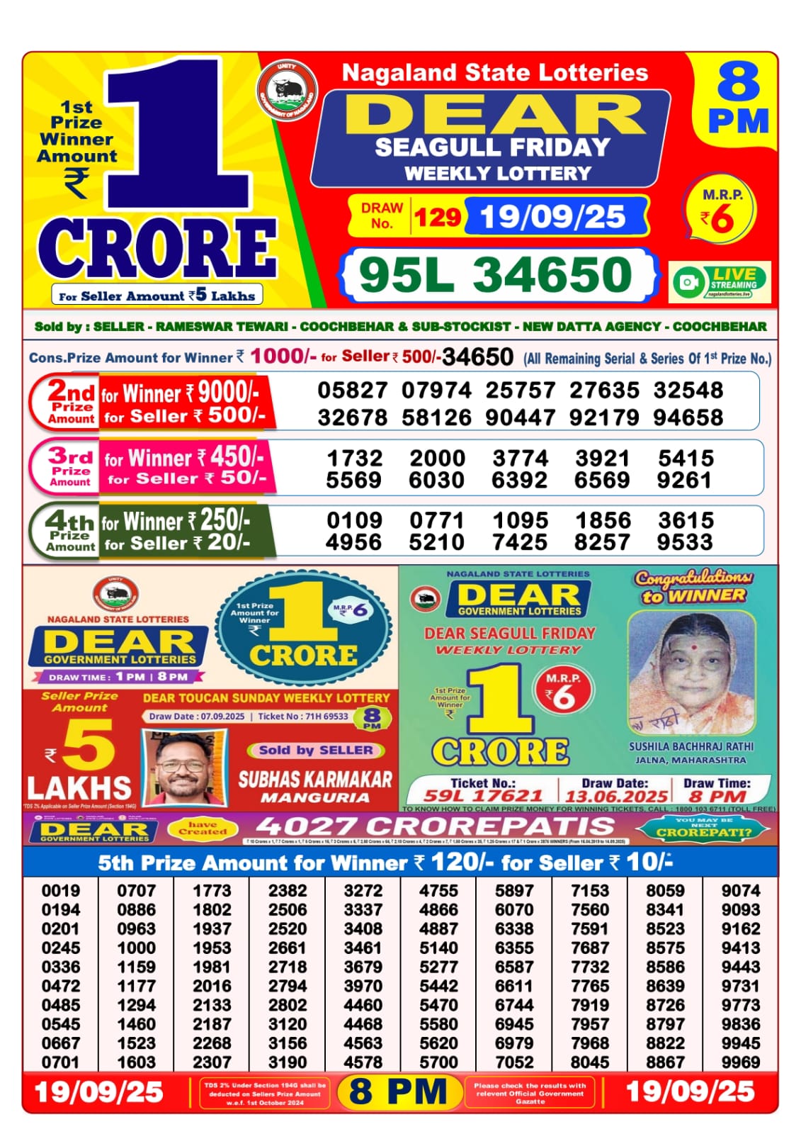 Nagaland State Lottery Sambad Dear Night 8 PM Result Today 19-09-2025 Winners List September 19, 2025 Leave a Comment on Nagaland State Lottery Sambad Dear Night 8 PM Result Today 19-09-2025 Winners List