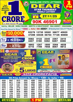 Nagaland State Lottery Sambad Dear Morning 1 PM Result Today 27-11-2025 LIVE