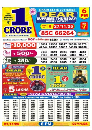 Sikkim State Lottery Sambad Dear Evening 6 PM Result Today 27-11-2025