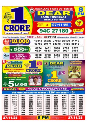 Nagaland State Lottery Sambad Dear Night 8 PM Result Today 27-11-2025 Winners List