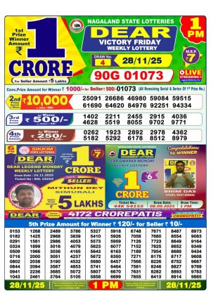 Nagaland State Lottery Sambad Dear Morning 1 PM Result Today 28-11-2025 LIVE