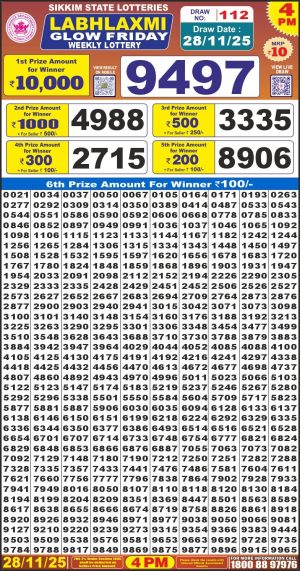 Sikkim State Lottery Sambad Dear Evening 6 PM Result Today 28-11-2025
