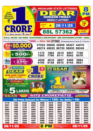 Nagaland State Lottery Sambad Dear Night 8 PM Result Today 28-11-2025 Winners List