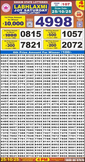 Labh Laxmi Lottery 4 PM Result Today 25-10-2025 LIVE