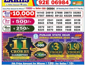 Punjab State Dear 100 Monthly Lottery Result 12.08.25 Winner list August 12, 2025 Leave a Comment on Punjab State Dear 100 Monthly Lottery Result 12.08.25 Winner list