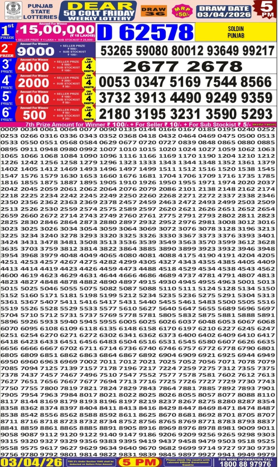 Punjab State Dear 50 Lottery 5 PM Result 03-04-2026 April 3, 2026 Leave a Comment on Punjab State Dear 50 Lottery 5 PM Result 03-04-2026