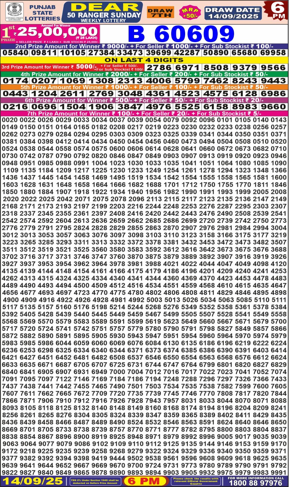 Punjab State Dear 50 Lottery 6 PM Result 14-09-2025 September 14, 2025 Leave a Comment on Punjab State Dear 50 Lottery 6 PM Result 14-09-2025