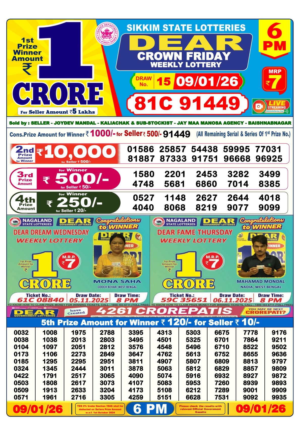 Sikkim State Lottery Sambad Dear Evening 6 PM Result Today 09-01-2026 January 9, 2026 Leave a Comment on Sikkim State Lottery Sambad Dear Evening 6 PM Result Today 09-01-2026
