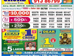 Sikkim State Lottery Sambad Dear Evening 6 PM Result Today 15-12-2025 December 15, 2025 Leave a Comment on Sikkim State Lottery Sambad Dear Evening 6 PM Result Today 15-12-2025