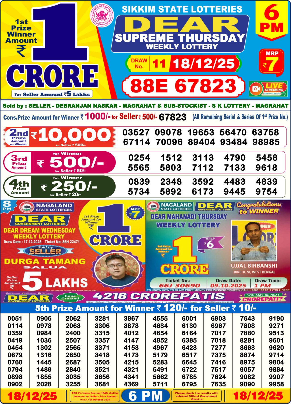 Sikkim State Lottery Sambad Dear Evening 6 PM Result Today 18-12-2025 December 18, 2025 Leave a Comment on Sikkim State Lottery Sambad Dear Evening 6 PM Result Today 18-12-2025